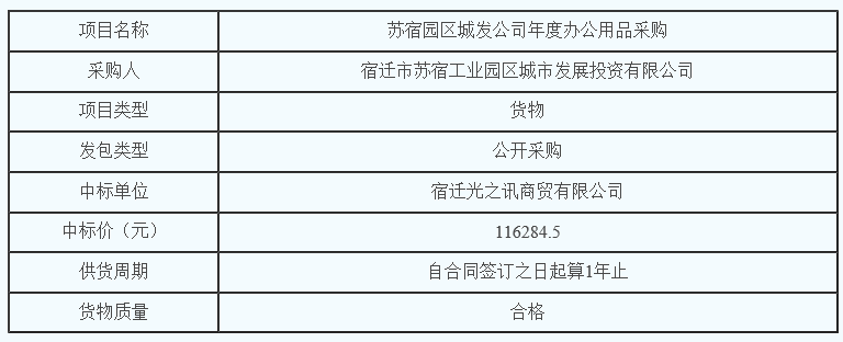 蘇宿園區(qū)城發(fā)公司年度辦公用品采購(gòu)的中標(biāo)公告