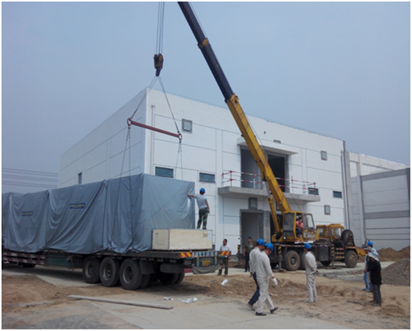 許莊110KV變電站首批設(shè)備進站