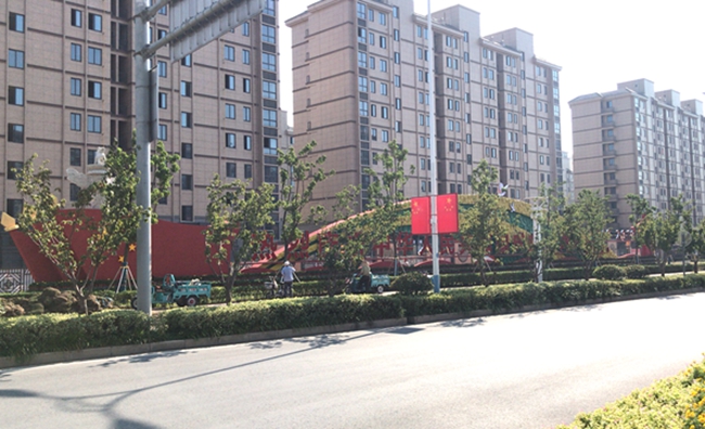近期,走在道路上,園區(qū)居民會發(fā)現(xiàn)青海湖西路東入口南側(cè)設置一座建國70周年景觀雕塑,同時道路兩側(cè)路燈桿件懸掛國旗、中國結(jié)和70周年標識的中國結(jié)等各式各樣的節(jié)日氛圍。
