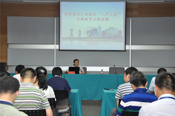 8月5日下午,園區(qū)工委副書記、管委會副主任駱敏為園區(qū)機(jī)關(guān)事業(yè)單位、國資國企黨員講了一堂“三嚴(yán)三實(shí)”專題黨課。